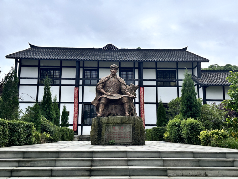 邓萍是红军的著名战将,是红军长征中牺牲的唯一一位军团级将领,被评为100位为新中国成立作出突出贡献的英雄模范之一。四川飞球党委全体党员于邓萍故里瞻仰先烈事迹,仿佛是一次与革命先辈的跨时空对话。邓萍烈士19岁从老家富顺独自前往武汉,考入黄埔军校武汉分校。在校期间加入中国共产主义青年团,1928年加入中国共产党。在革命的洪流中,他逐渐成长为一名优秀的军事干部。从平江起义到井冈山斗争,从江西苏区转战到长征等战斗中,展现出了卓越的军事才华和大无畏的担当精神。年仅27岁的他,为了革命事业壮烈牺牲。
