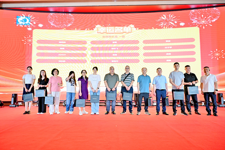 晚会精心设置了令人满心期待的抽奖环节。当抽奖环节正式开启,现场的气氛瞬间被点燃。随着一个个幸运号码被抽出,现场欢呼声、惊呼声此起彼伏,一浪高过一浪。获奖者们带着满脸的喜悦与激动,快步走上舞台,接受属于他们的幸运与荣耀。台下未中奖的观众也毫不气馁,依然热情高涨,为每一位幸运儿鼓掌喝彩。整个抽奖现场热闹非凡,洋溢着欢乐、喜庆的浓厚氛围,让这场晚会变得更加令人难忘。