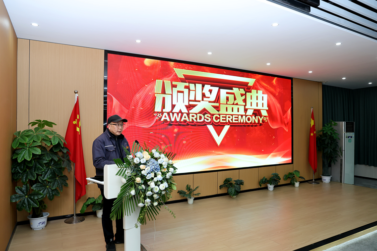 中汽成配常务副总经理邹祖立宣读了公司2025年评选出唐夜婷等11名生产标兵、张光荣等8名质量标兵、以及万丽等5名业务标兵的颁奖决定及获奖名单。邹总希望获奖代表能够珍惜荣誉,再接再厉,争做质量与效益核心价值观的模范践行者。同时号召全体员工要以标兵为榜样,学习他们立足岗位,勇于拼搏,主动作为无私奉献的精神,继续以饱满的热情和十足的干劲投入到2026年的各项工作中。